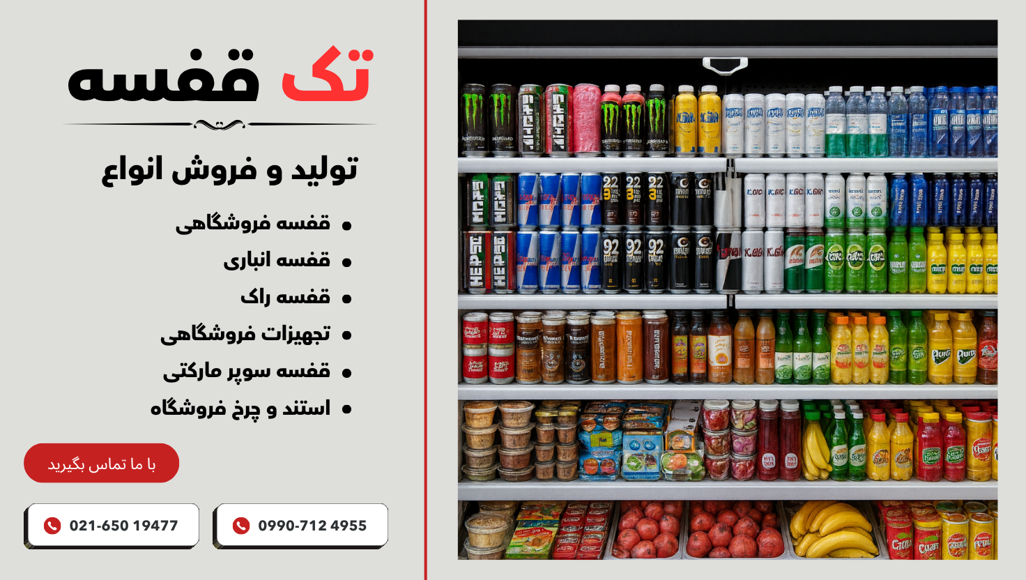 شرکت تک قفسه با دارا بودن مجهز ترین و برترین دستگاه های روز دنیا توانسته با کیفیت ترین یخچال های فروشگاهی را تولید کند. برای اطلاع از قیمت یخچال های فروشگاهی همین حالا با کارشناسان ما تماس حاصل فرمایید تا از نحوه خرید یخچال های فروشگاهی و شرایط فروش آن ها مطلع شوید.